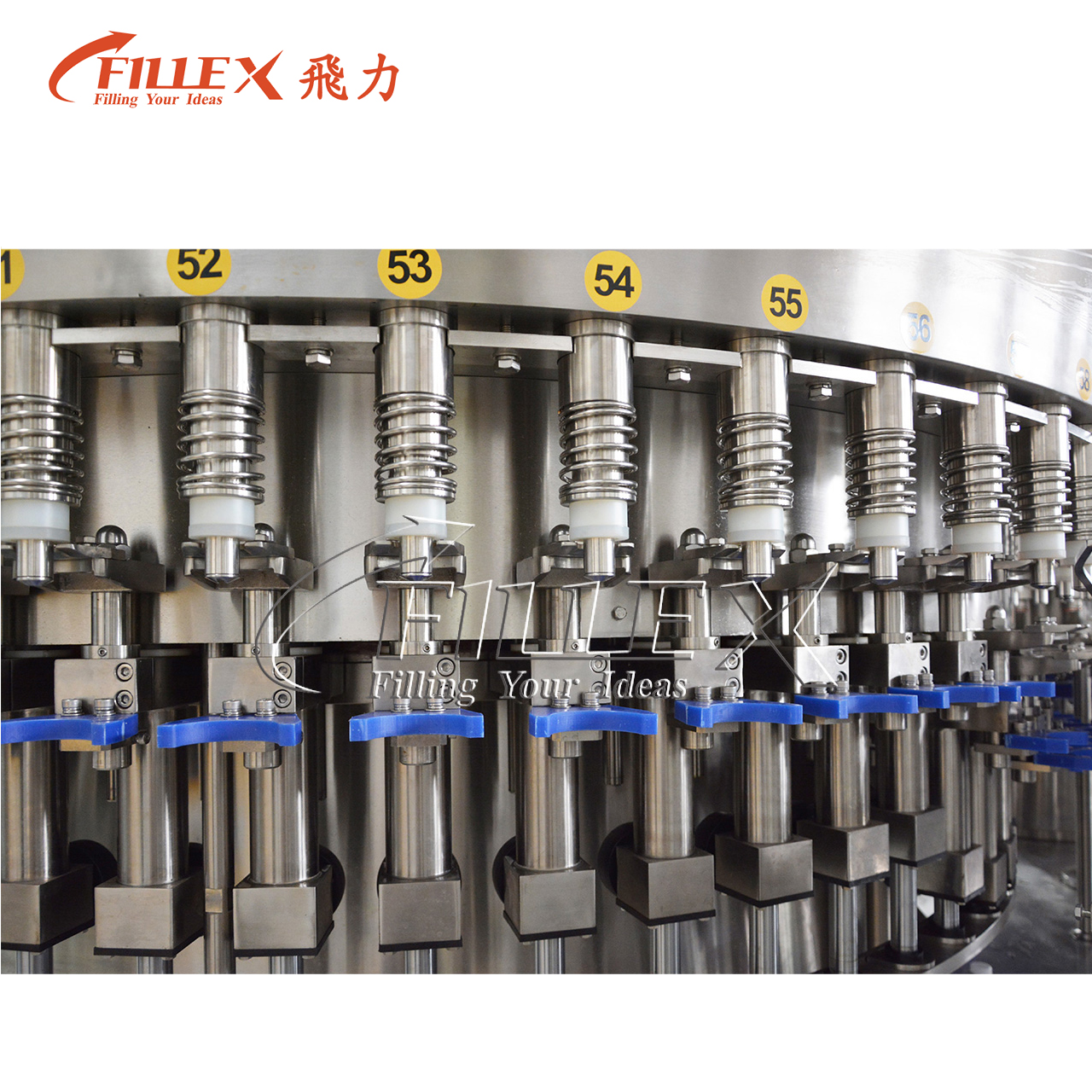 (3) Разливочная машина Fillex использует подвесную конструкцию конвейерной бутылки, чтобы сделать замену формы для бутылок более удобной, быстрой и более экономичной.